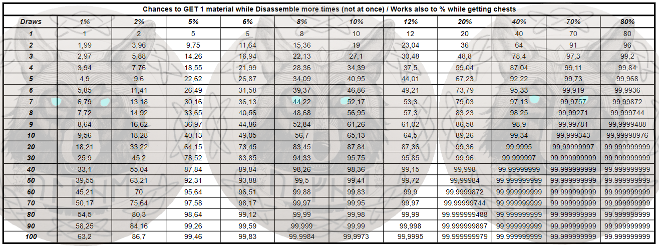 a chart showing how the chances increase with multiple draws is useful