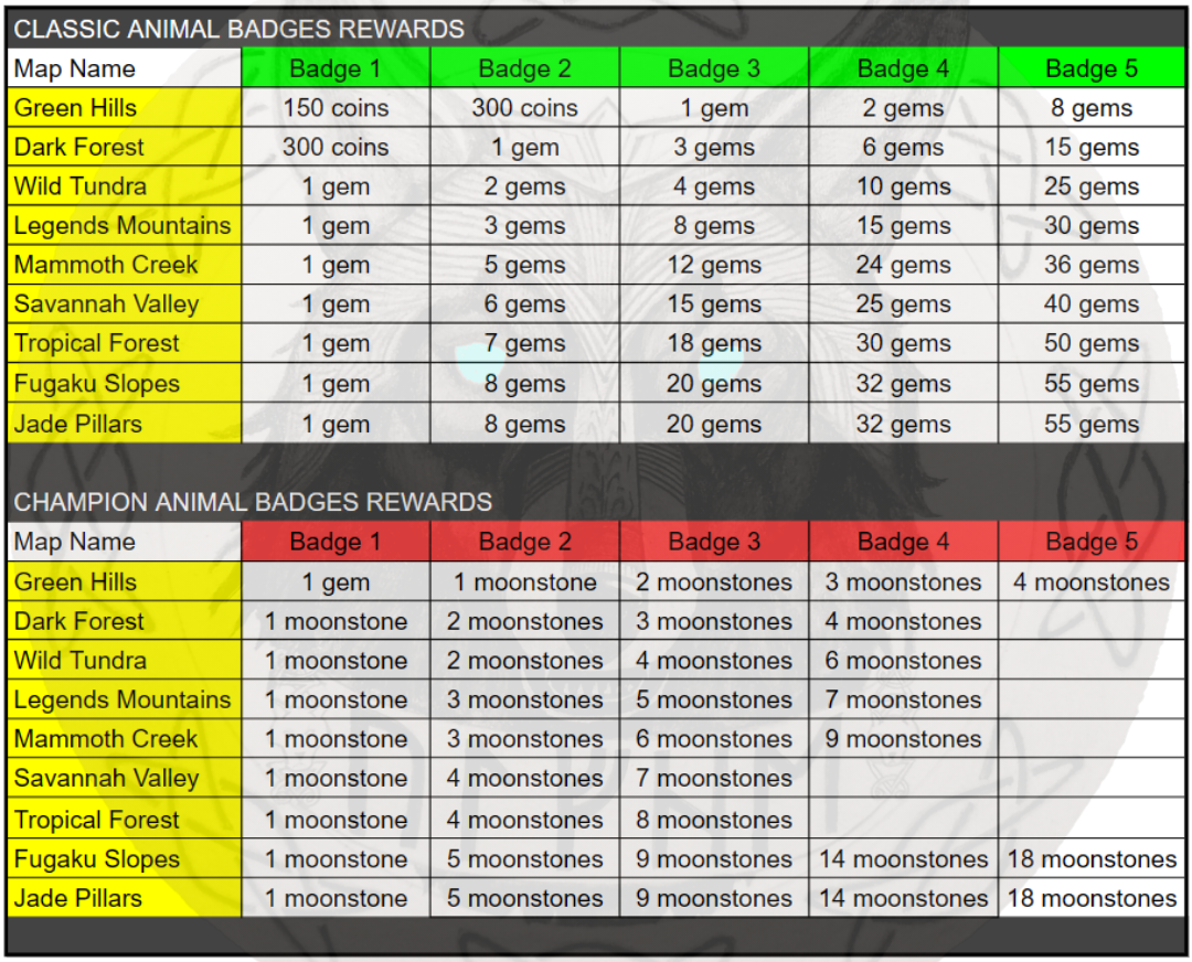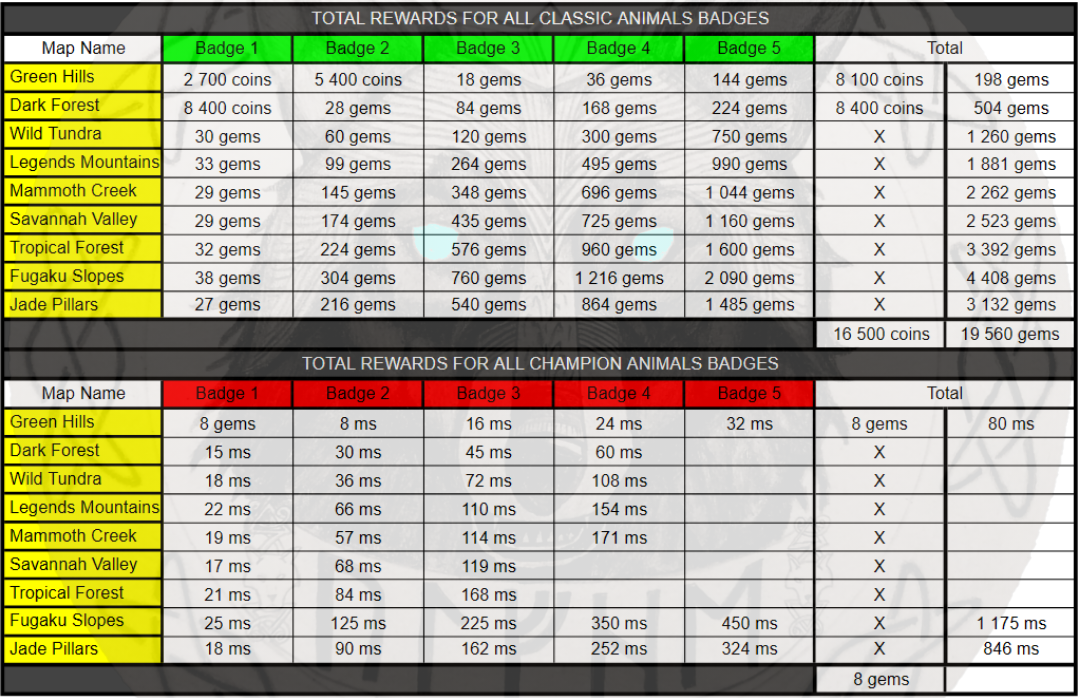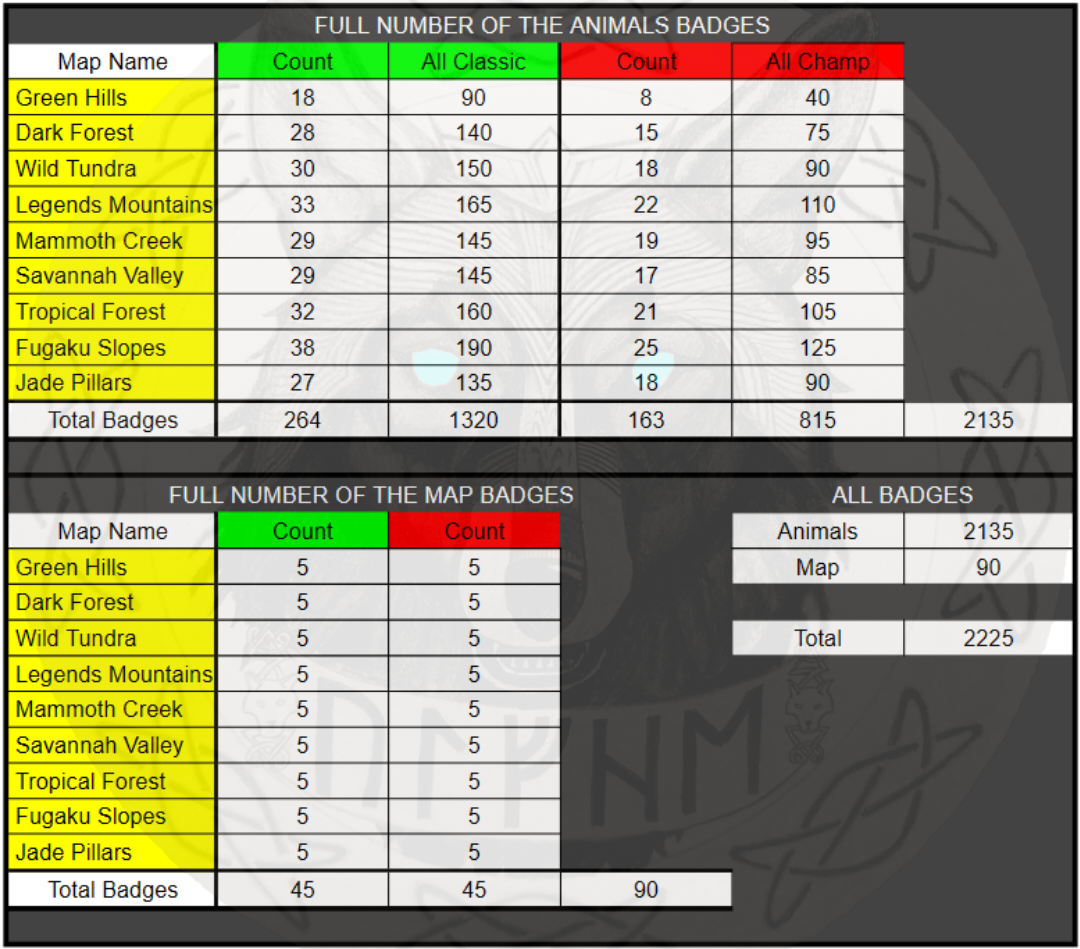 then All ... determines the number of all 5 badges per animal.